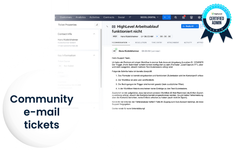 Als zertifizierter GoHighLevel Admin bringe ich Erfahrung, Prozesse und ein tiefes Verständnis für SaaS mit – ohne dass du selbst Support-Strukturen aufbauen musst.